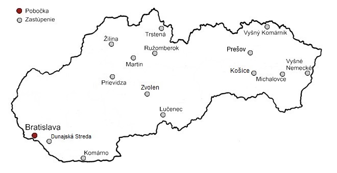 a miestach uvedených v mapke. V prípade vášho záujmu kontaktujte centrálu spoločnosti.